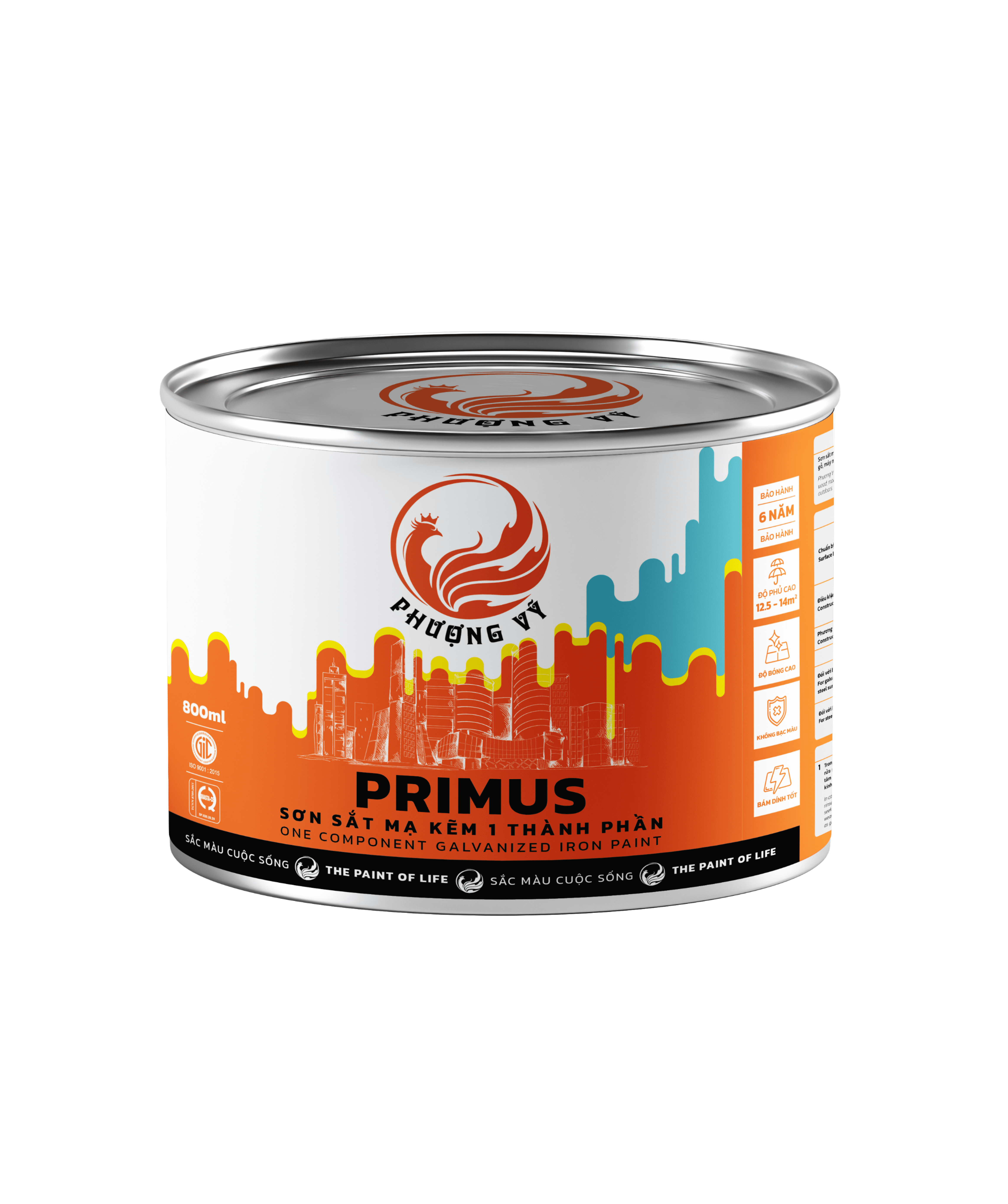 PRIMUS One Component Galvanized Iron Paint of Phượng Vỹ is used as a decorative and protective coating on galvanized iron, stainless steel, glass, steel, wood, machinery, pre-engineered building, tower cranes, scaffolding, barrel's surfaces etc. Suitable for use both indoors and outdoors.