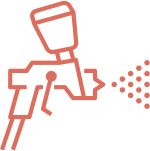 Dùng súng phun hoặc hệ thống sơn máy phun lên bề mặt sản phẩm.